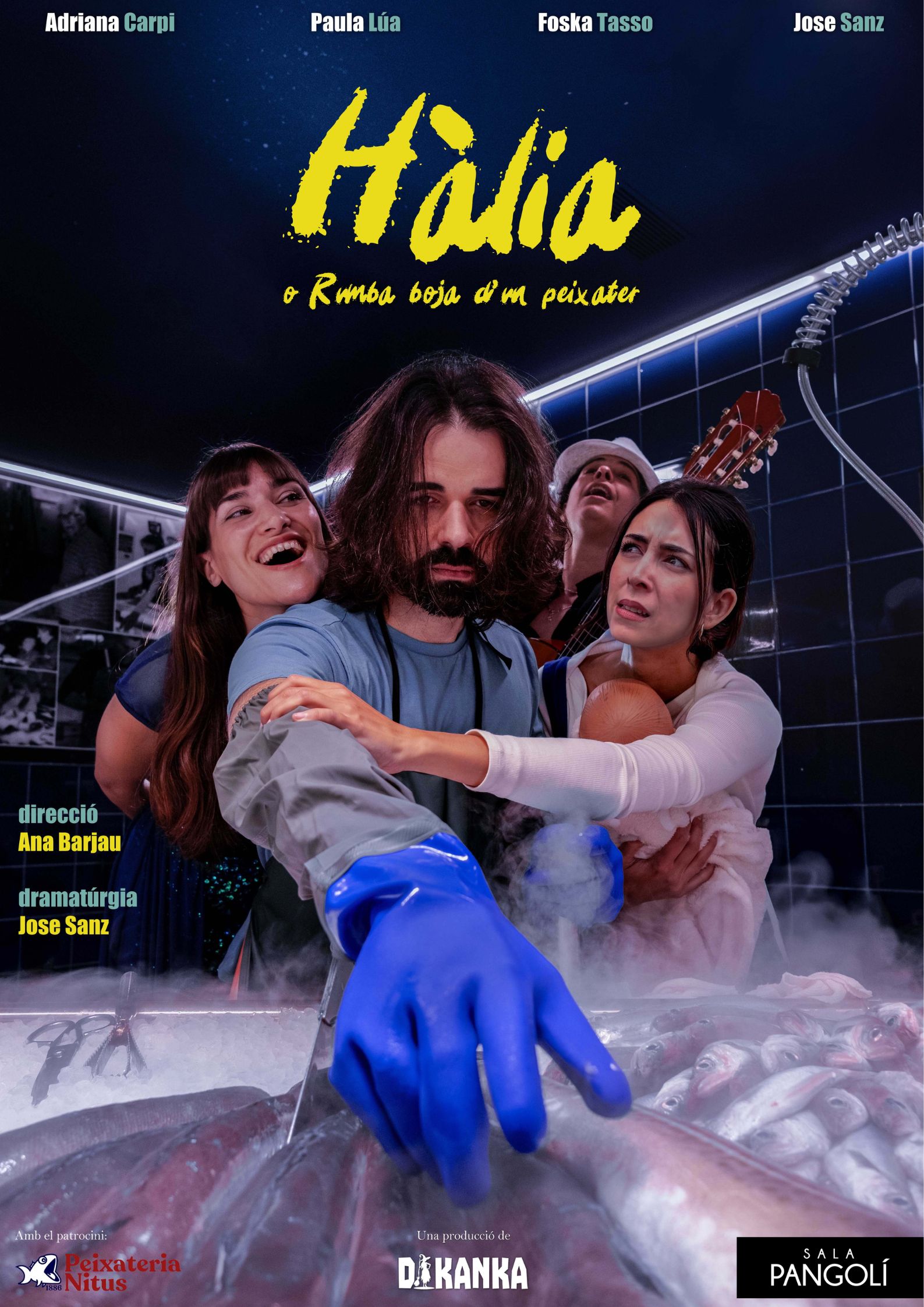 Arriba a la Sala Pangolí HÀLIA o rumba boja d’un peixater, una peça sobre el conformisme dins l’estat del benestar que ens planteja una hipotètica evasió d’aquesta realitat únicament possible gràcies a la màgia. Un conte que es val del realisme màgic i la música per reivindicar les petites rebel·lions personals, sovint vistes pel veí com un estat d’alienació mental o, fins i tot, de bogeria.